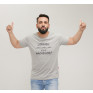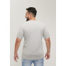 Camiseta desenvolvida em tecido de malha cinza mescla e estampada em silk cinza chumbo. Sem estampa nas costas. Possui etiqueta de tafetá nas costas e na lateral. Gola redonda canelada pespontada, tapa costura na gola com reforço de ombro a ombro, punho e barra com costura dupla. Composição: 93% Algodão e 7% poliéster