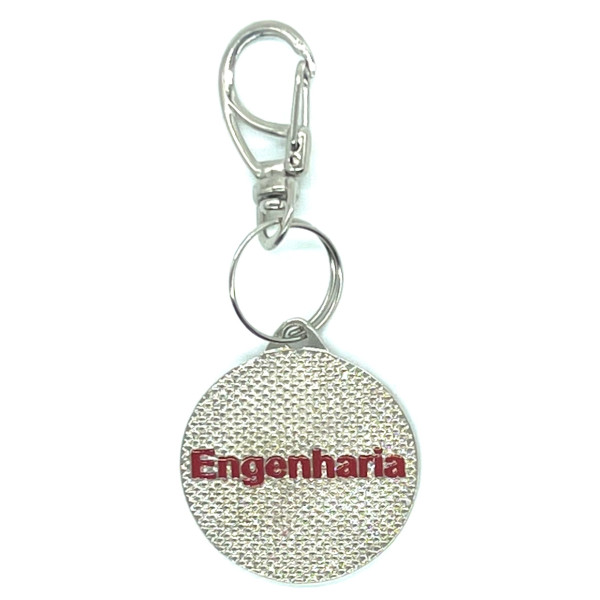 Chaveiro em ZAMAC banhado em níquel e esmaltado em vermelho artesanalmente.