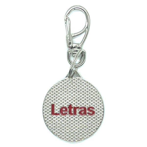 Chaveiro em ZAMAC banhado em níquel e esmaltado em vermelho artesanalmente.