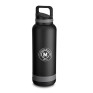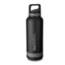 Garrafa térmica em aço inox com parede dupla isolada a vácuo, com capacidade de até 750ml. Tampa rosqueável com anel de silicone para vedação. Alça plástica tipo mosquetão.