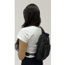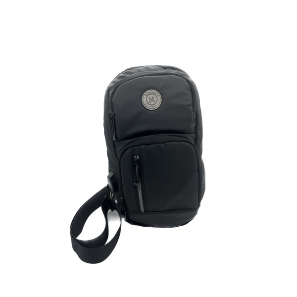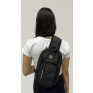 Mochila de ombro em couro sintético resistente à água com seis compartimentos, sendo dois deles exclusivos para cartões e proteção contra furto.
